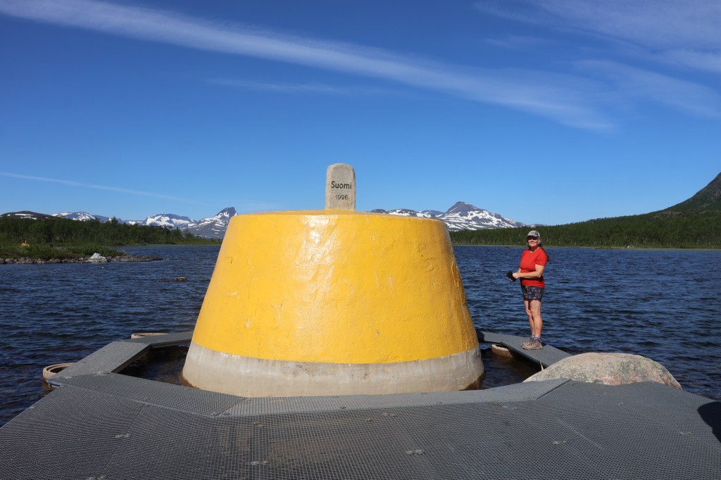 We took a ferry on the lake next day, along with quite a lot of other people, and were welcomed by the operator to Sweden, where we landed. The purpose was to walk the 3km to the point where Sweden, Norway and Finland meet. It’s quite a thing to do.