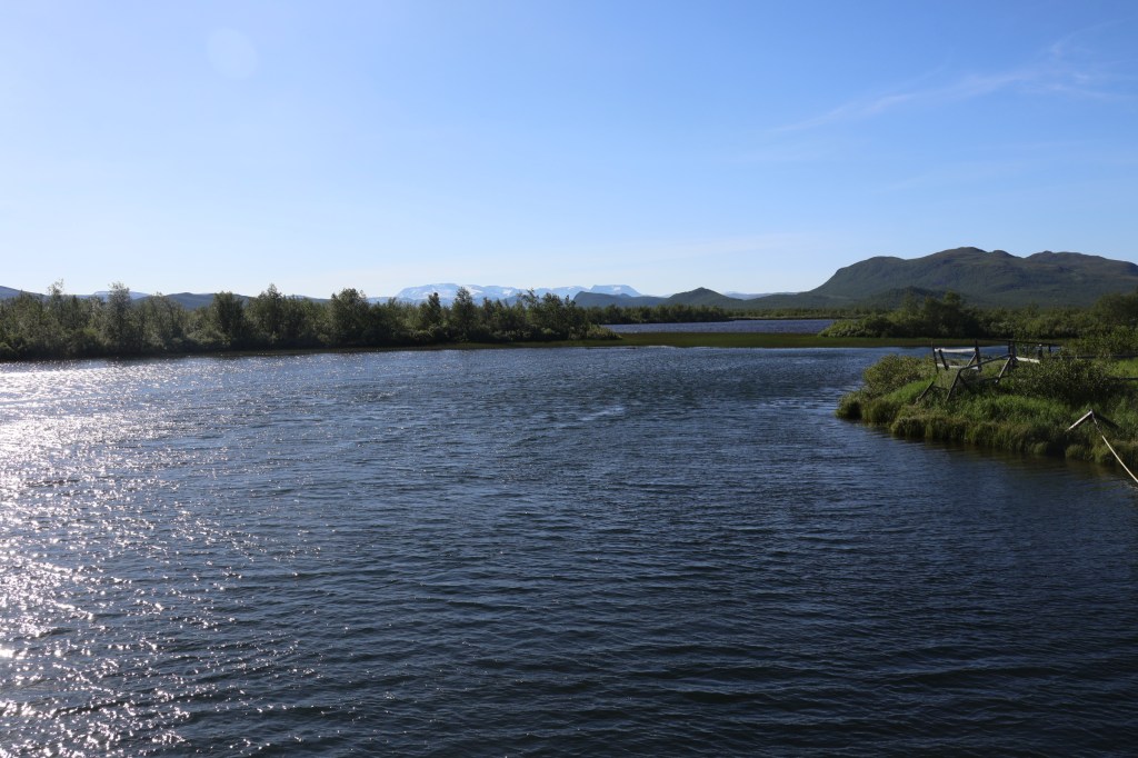We had intended to stay off-road at the bridge to Keinovuopio, a place we last visited in February 2017. Now there was a big river, and lots of boats. Unfortunately lots of mosquitoes, too.