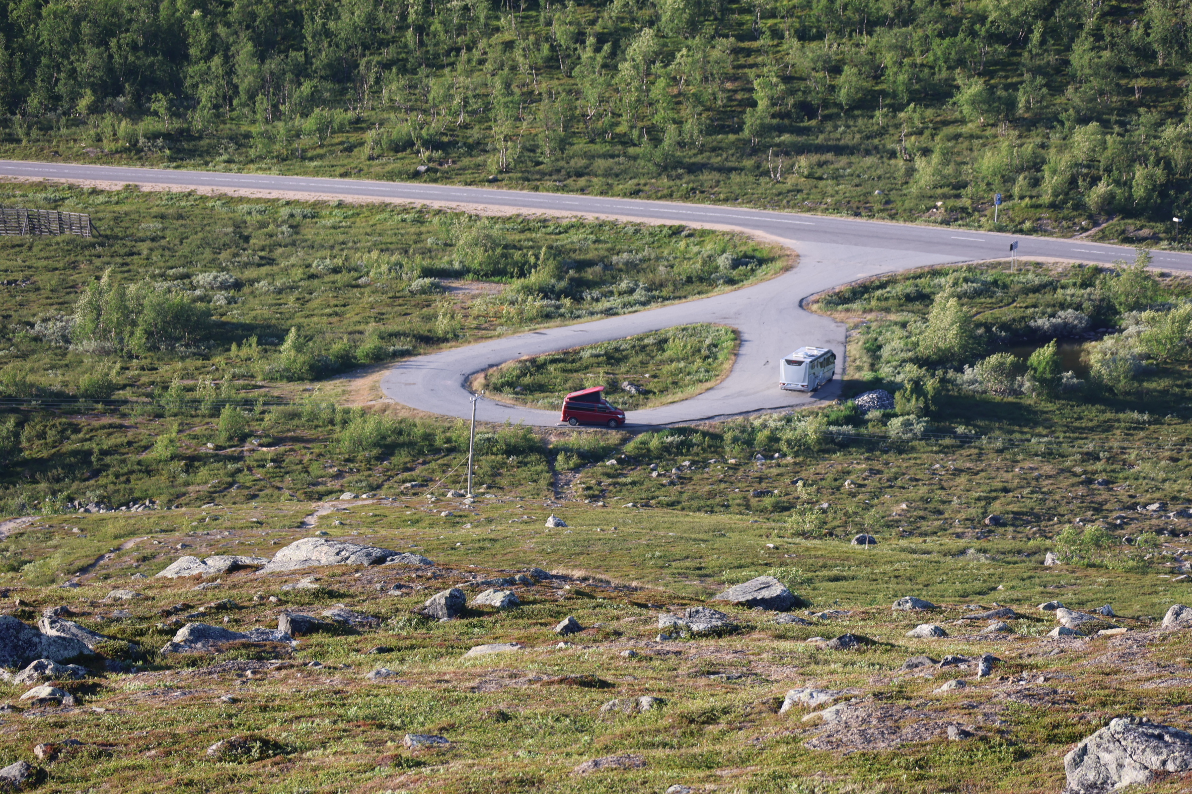 The mosquitoes won. We moved to a breeze and went up a hill, Lautsuvaara, 700m+ nearby for the evening. We did not know at the time the parking place was at Finland’s highest road, a place known as Muotkatakka.