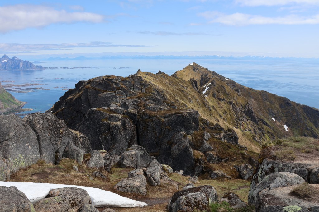 We moved north to Leknes and from Hagskaret climbed Justadtinden on the east side of Vest Vagøy (island).