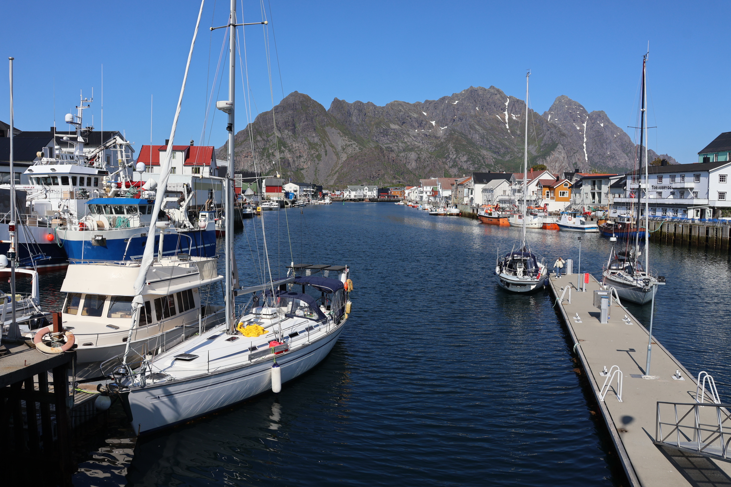 We had pleasant detours round the north side of Lofoten and took a detour South to see Henningsvær. This spectacular village is a gem being spoiled by tourist traffic, including us. We would willingly have stopped short and walked or even taken a shuttle bus, had there been the opportunity and had we known.