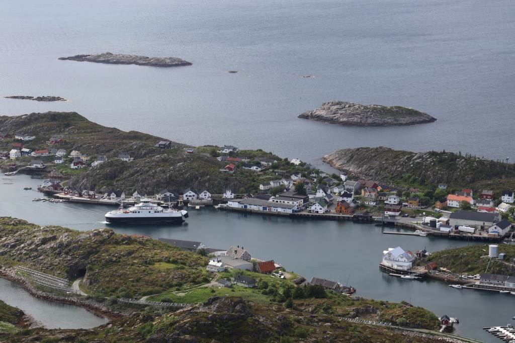 Across a ferry to another part of the same island, Hinnøy, we headed for Oppmyre and the end of the road at Nyksund. Next day we walked one of Dronning Sonia’s routes, a real workout round the hills at the end of the peninsula. She was a tough bird in her time!