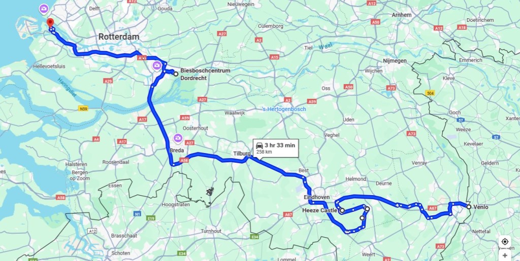 On the way across to our ferry, we encountered heavy heat in the Netherlands. We had a couple of nights in Someren with Duncan and Kyryn, and arrived on 13th at Europoort for the ferry back to England.