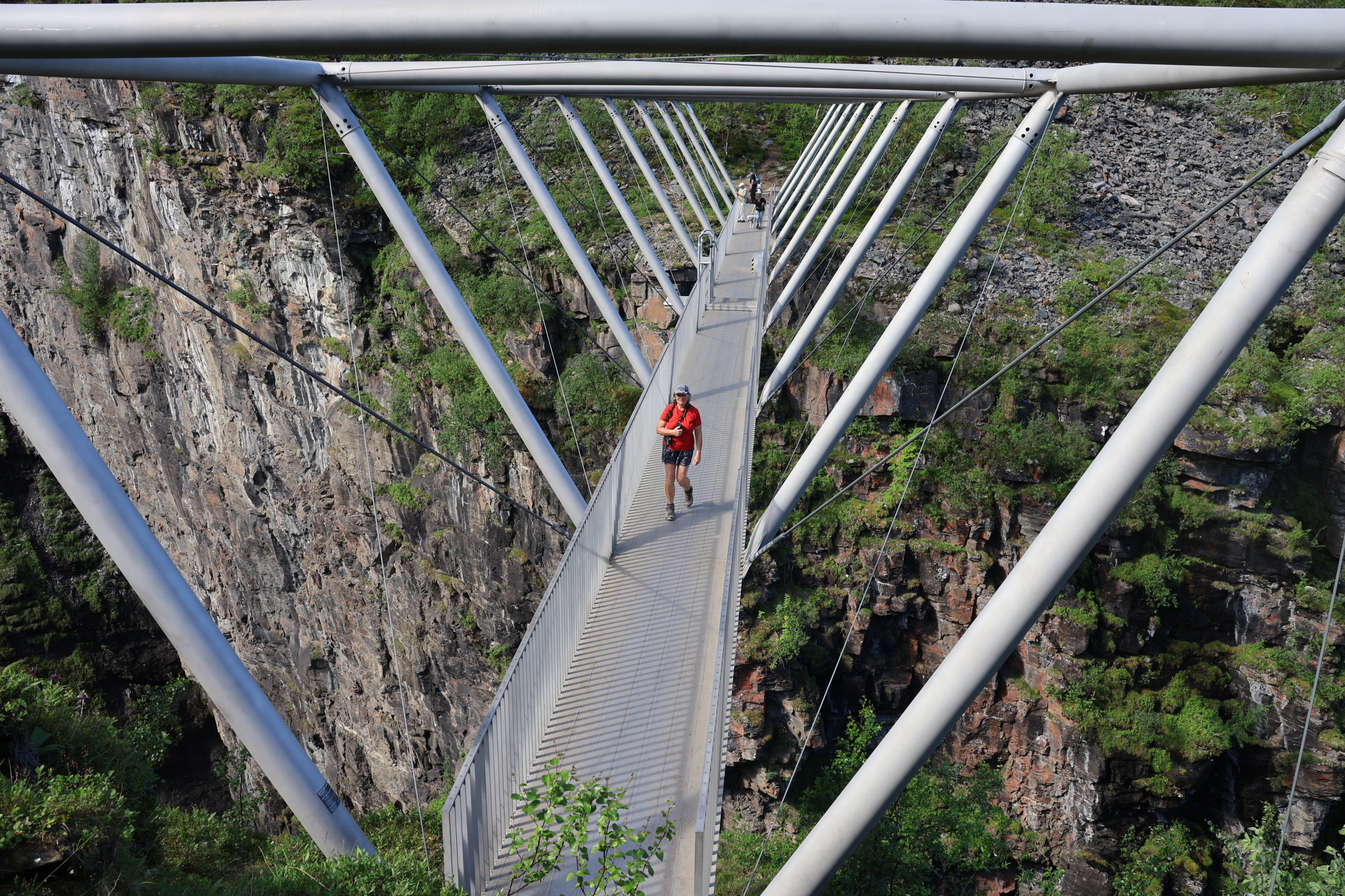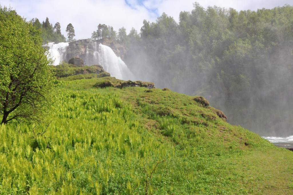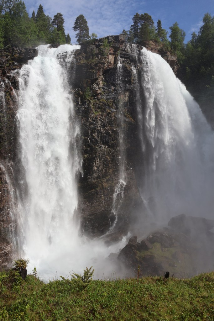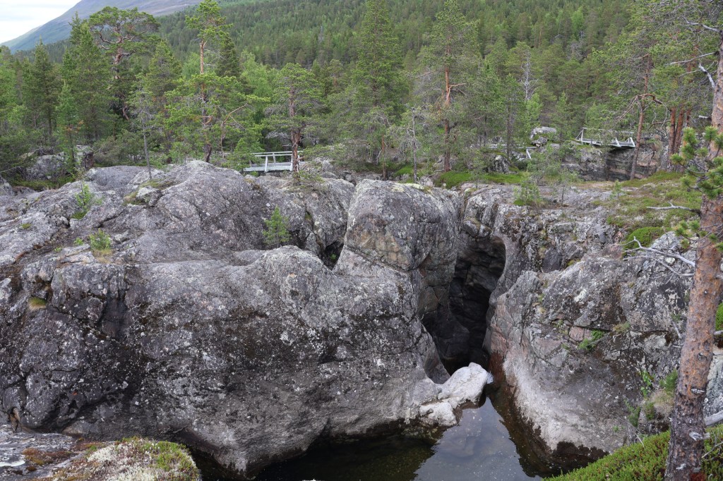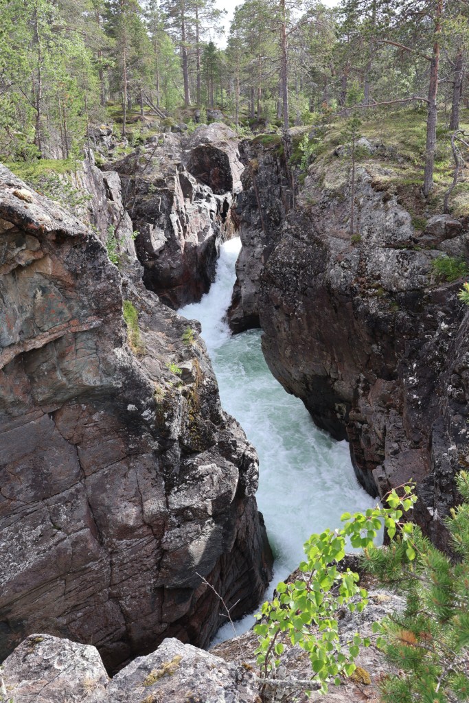 We visited the Finnfoss bridges over deep rock gorges, set with many potholes, an impressive sight. Although it may appear that the most scary places were chosen for bridges, the solid rock offered the best foundations and were well out of reach of flood waters.