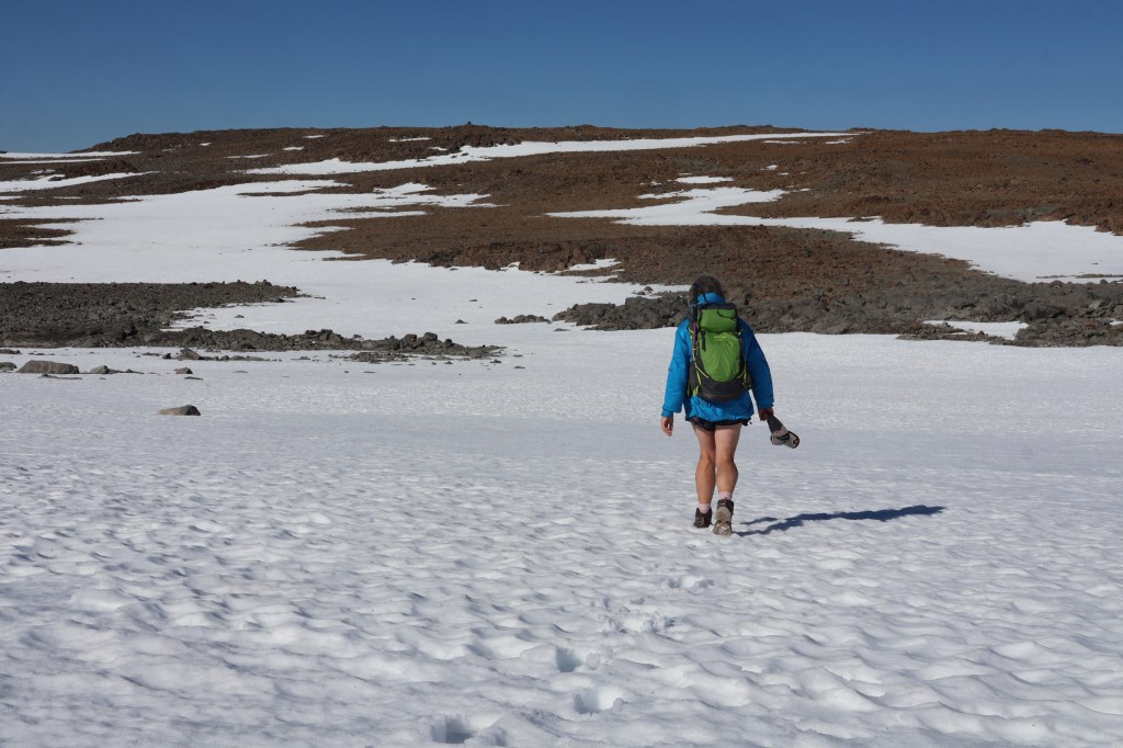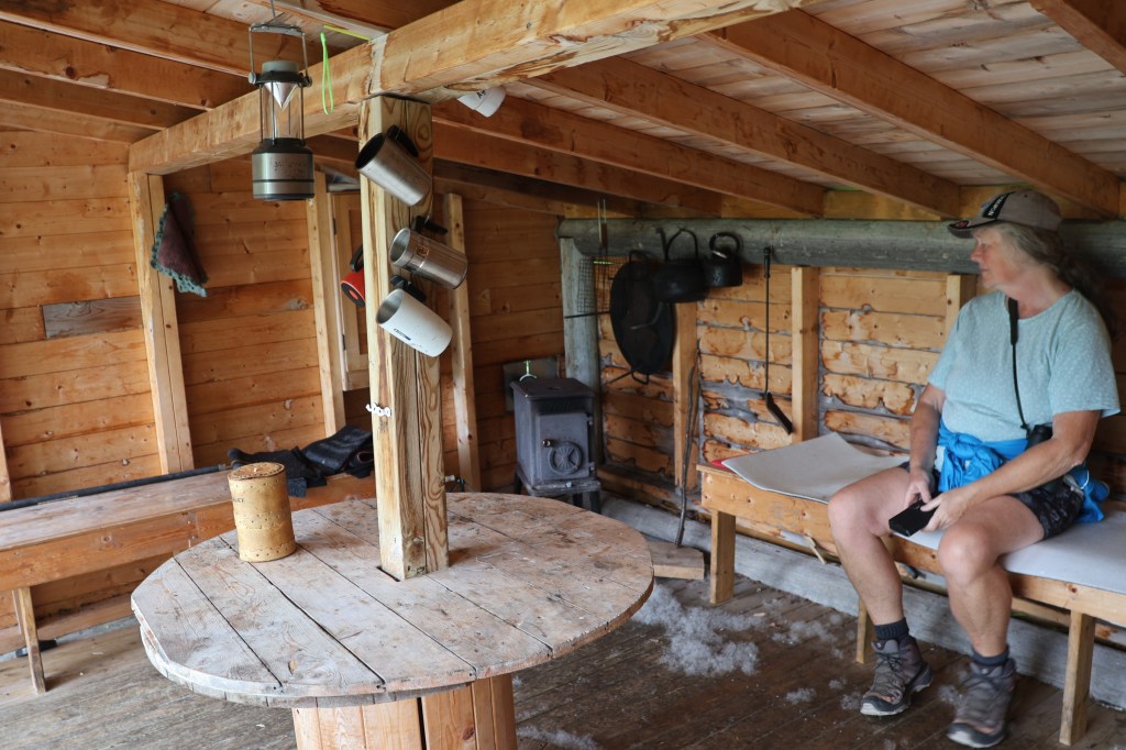 Our visit to Lyngen was crowned with a one night stay at the isloated lake-shore cabin of Jægervasshytta. We backpacked in to find the popular hut empty. The weather was good, the water inviting… And next day we had a walk up the steep slopes behind to see the river falling from glaciers on the mountains.