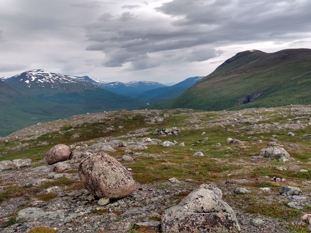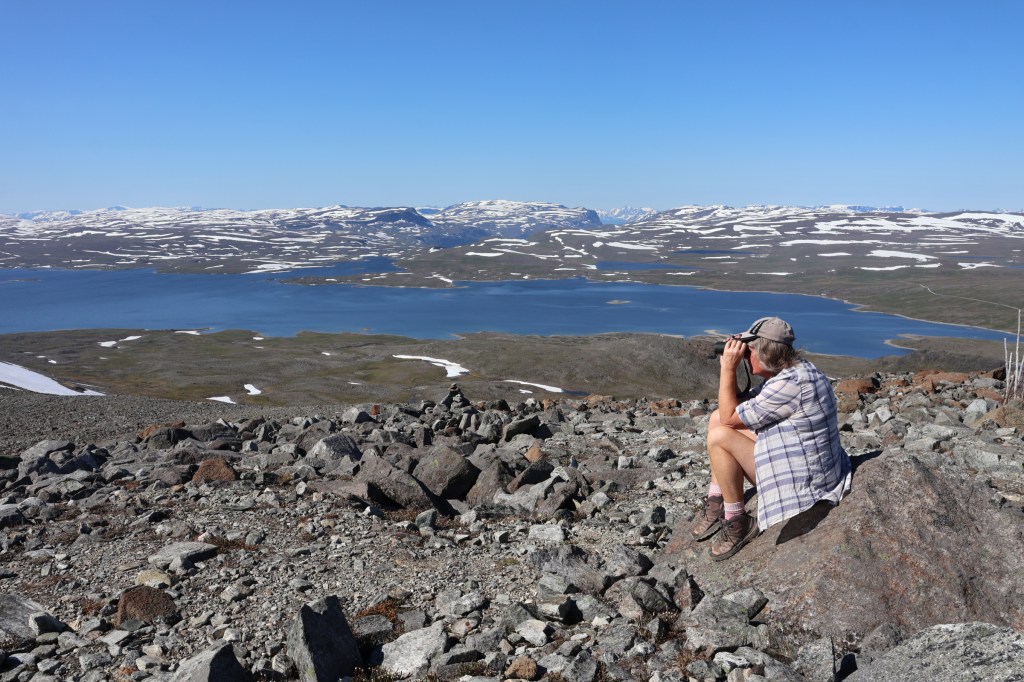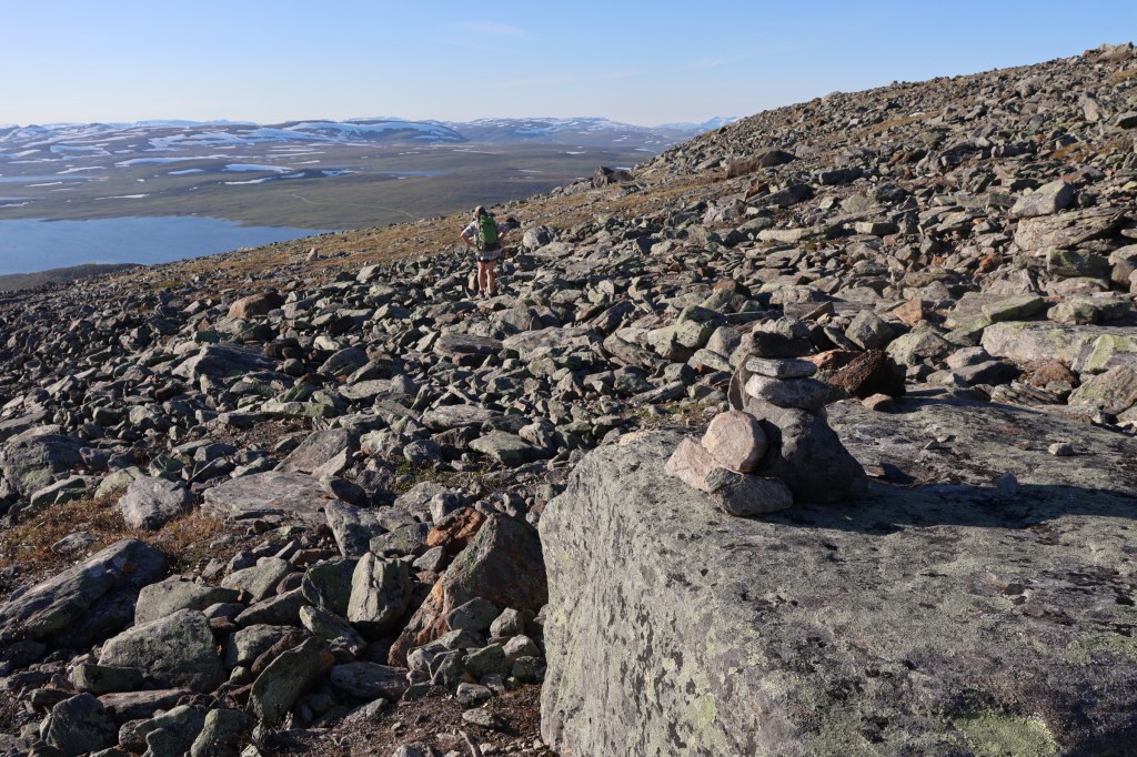Our next adventure was to visit the highest point of Finland, by paying for and driving up 27km of mostly gravel road. From the upper end, by a large lake, the trail soon disappears into a boulderfield where there is virtually no possibility of living creatures surviving, so harsh is the climate and deep the cover of loose boulders. This continues for 6km to Hàldi and slightly more back by Raisduottarhàldi. We had sunny weather though breezy later.