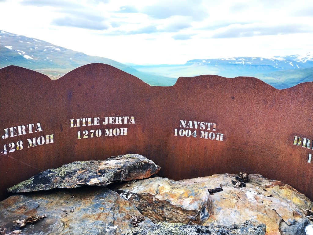 Next morning we took an early walk up Skaktaråsen. Though visited by very few people, it was crowned with an ingenious viewpoint indicator showing the surrounding peaks.