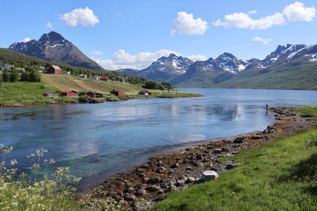 These mountainous islands are close to the mainland of Northern Norway in the fylke (county) administered by Tromsø. They each have their own kommune, though are very different in size.