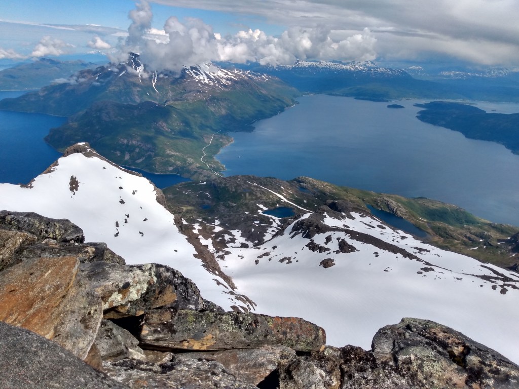 Next day we made two explorations of the mountains. Judith went to Juliusvatnet (the lake) above the head of the fjord. Nic climbed Langlitinden (1276m). This is claimed to be the highest island peak in Northern Europe, presumably discounting Britain.