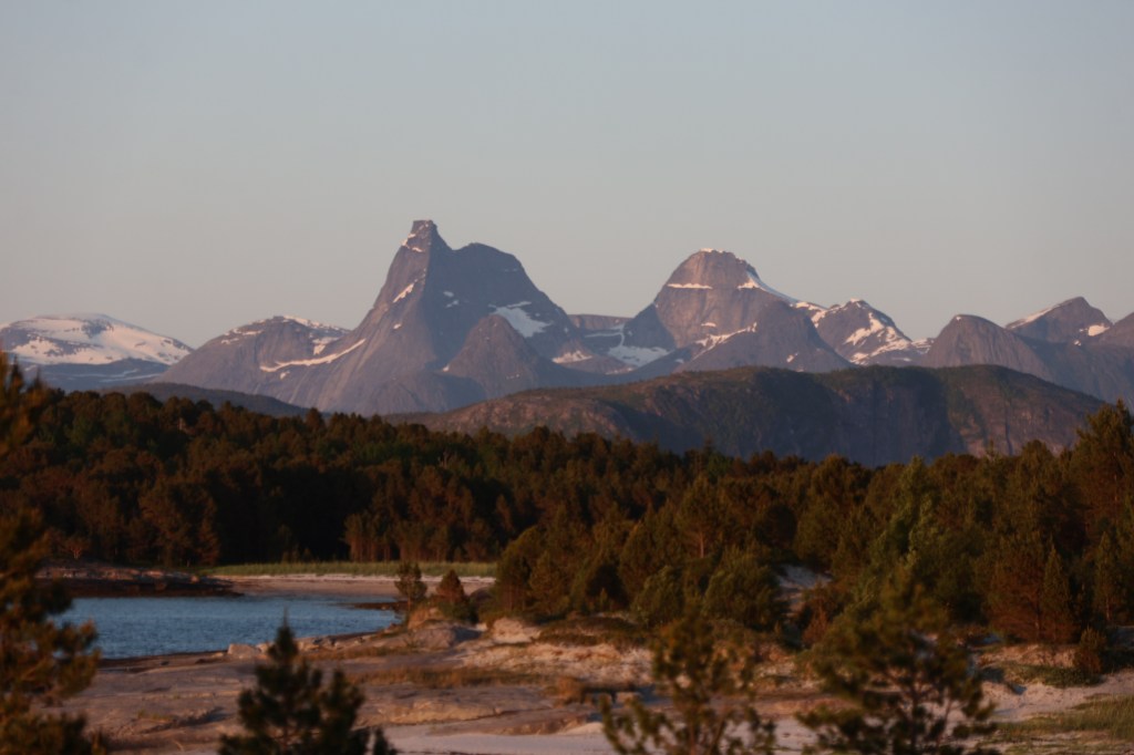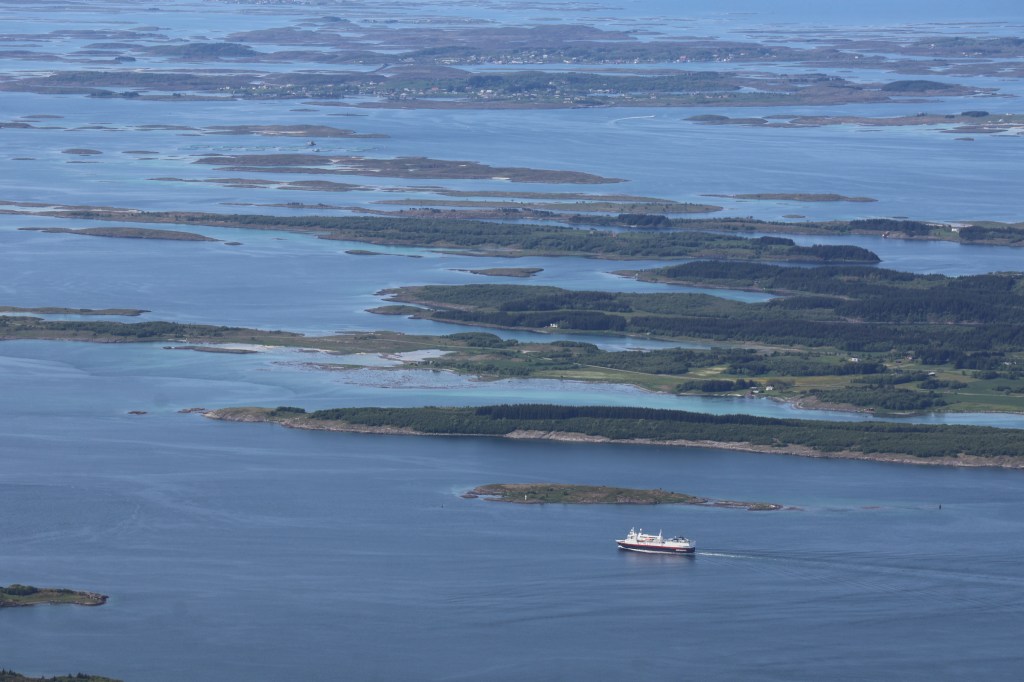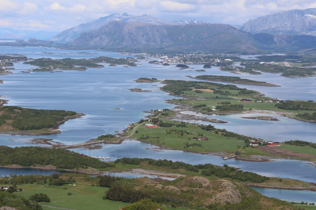 Norland fylke (county) is a long, narrow, strip of mountainous land, Islands, seaways and settlements, sometimes as narrow as 20km between the Norwegian Sea and Sweden. The only large town we passed is Bodø near the North end of our journey. We started with Bindal, visited Torghatten and the continued North on the Kystriksveien, the celebrated coast road of Helgeland.