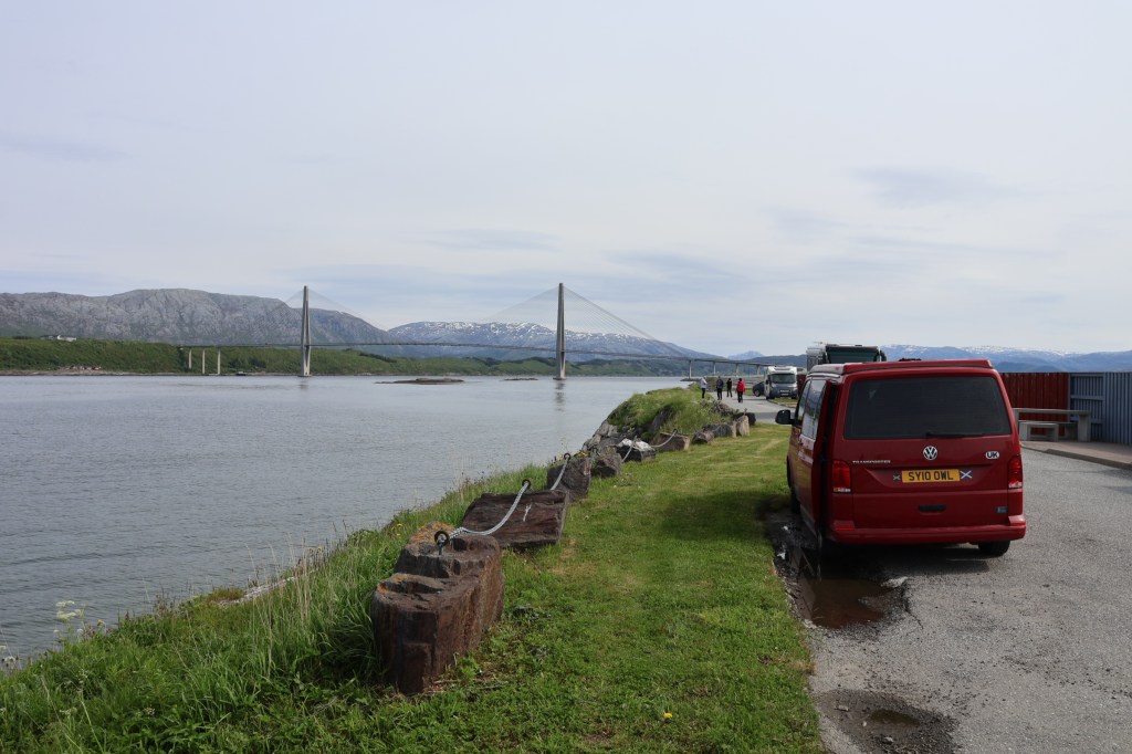 As forecast, the weather turned and we drove via the great tidal stream of Saltstraumen to Løding. Here another garage visit fixed a second fuse on the van and the leisure battery was up and running again.
