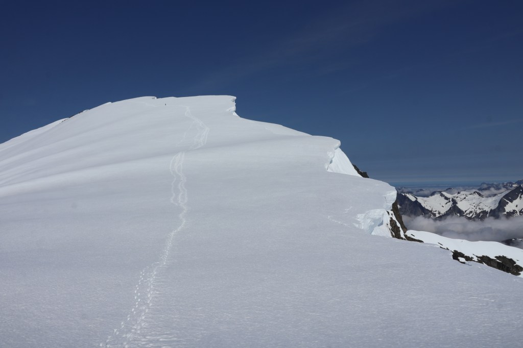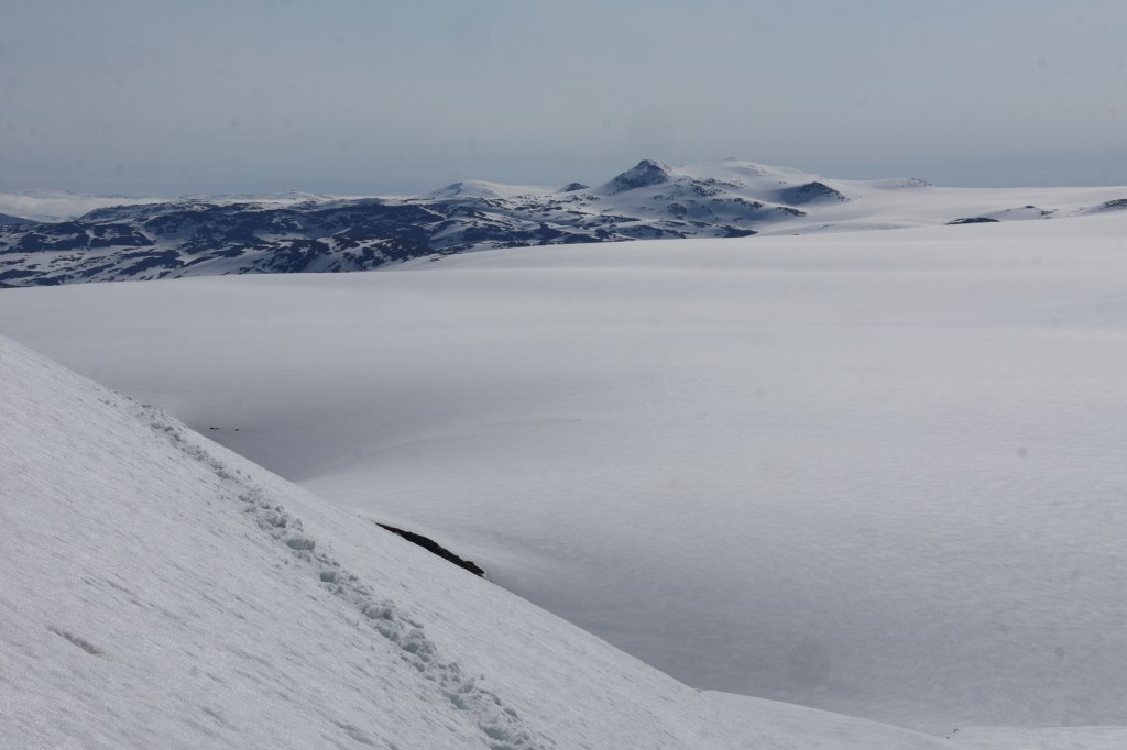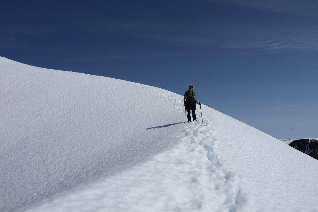 Bright and early, we set out for Helgelandsbukken. Two parties set out before us. Both soon stopped or turned back, so we were kicking steps in soft snow.
