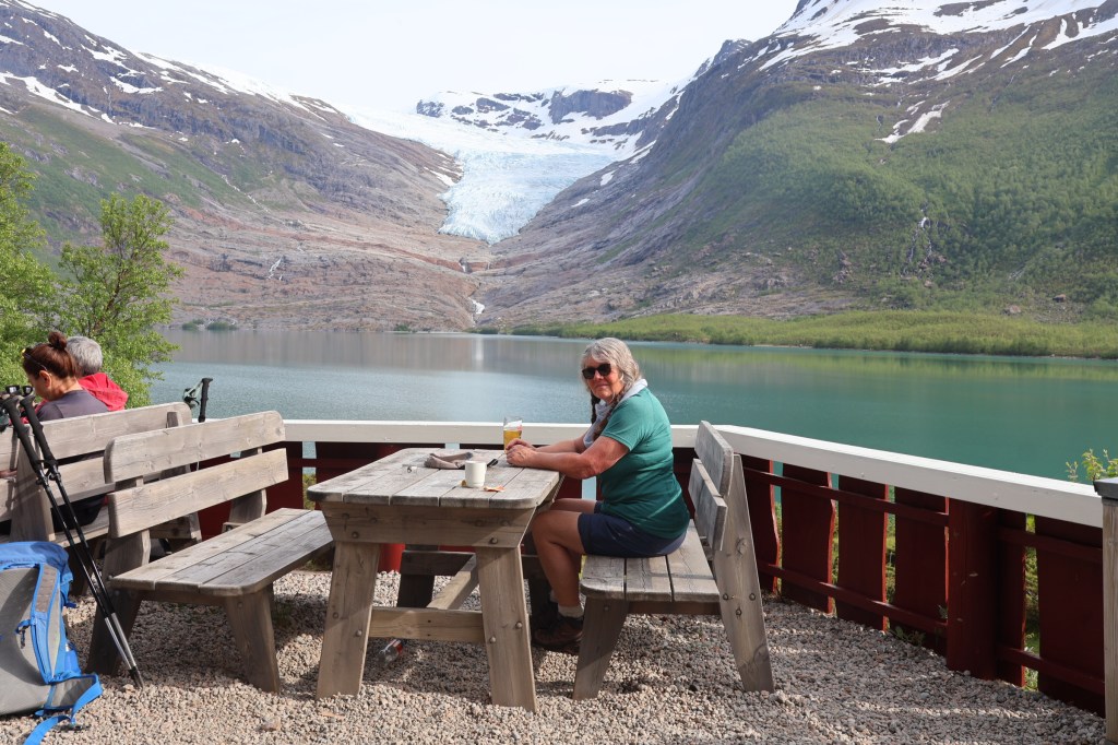 The day was not over. We had a meal at the Engebrygge restaurant with great views of the glacier.