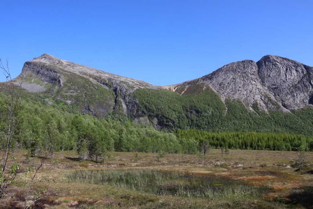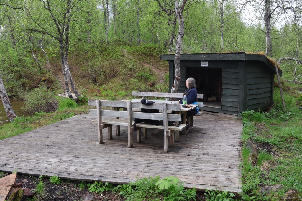 We made one more visit in this part of Norway, to the Sjunkhatten National Park. As the weather cleared we had another enjoyable walk through bogs and scrub woodland to an anglers’ gapahuk.