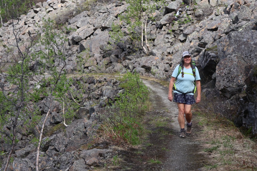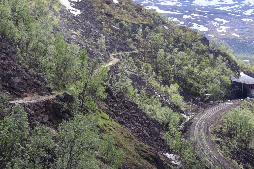 We took the train from Narvik to Riksgransen in Sweden up an astonishing line and walked back on the old road constructed for the railway workers who built it, the Rallarveien. Most rail traffic here is the iron ore from Kiruna, in Sweden. Millions of tons a week.